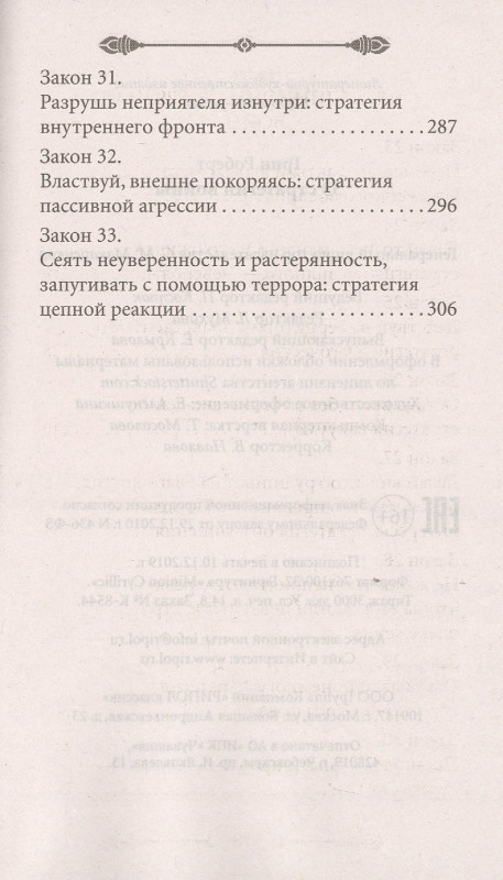 Краткая версия знаменитого бестселлера! Война и способы ее ведения обладают непреклонной, неумолимой логикой: если вы чего-то хотите или к чему-то стремитесь, то должны быть готовы сразиться за это. Владение стратегическим искусством войны сделает вашу жизнь более спокойной, мирной и плодотворной, ведь вы будете знать, каковы правила игры, и сумеете одерживать победы, не прибегая к насилию. "33 стратегии войны" от Роберта Грина, искушенного знатока человеческой психологии и автора мирового бестселлера "48 законов власти", помогут вам найти выход из любого сложного положения и принять правильное решение. Войну - как и любой другой конфликт - ведут и выигрывают благодаря стратегическому искусству.