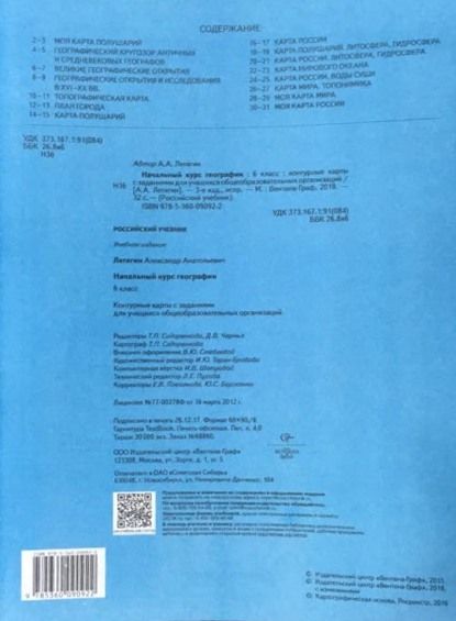 Контурные карты 2 части курса «Начальный курс географии» предназначены к использованию в комплекте с атласом и учебником по географии того же автора, входящим в Федеральный перечень учебников. Контурные карты содержат задания, что позволяет закрепить знания по темам: великие географические открытия, план и топографическая карта, географические оболочки Земли, географические объекты мира и России, Мировой океан и воды суши и др. Перечень контурных карт соответствует образовательному стандарту основного общего образования по географии.
