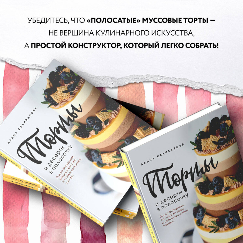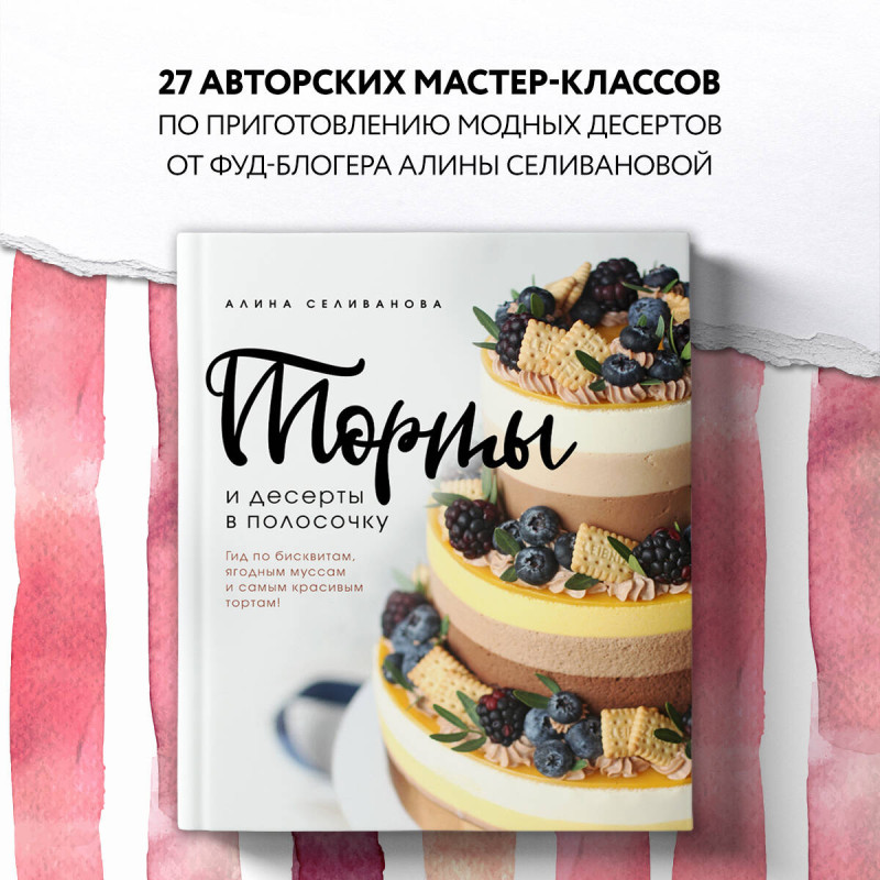 Уценка. Алина Селиванова. Торты и десерты в полосочку. Гид по бисквитам, ягодным муссам и самым красивым тортам!