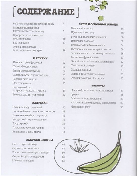 завтраки, закуски, главные блюда, соусы и десерты на 100%-ных растительных компонентов, а также полезная информация о гармоничном переходе на растительное питание, интересных продуктах и кулинарных лайфхаках.