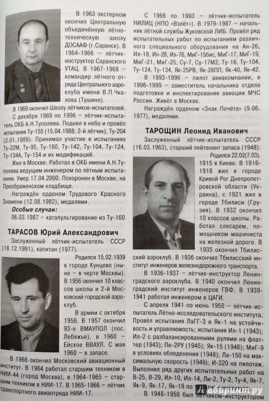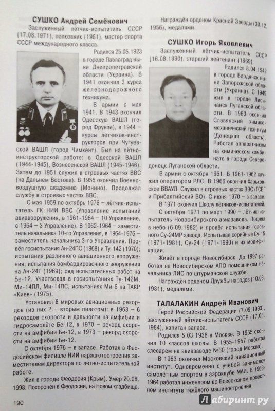 В данном издании впервые представлены краткие биографии всех заслуженных лётчиков-, штурманов - и парашютистов-испытателей СССР. Все биографии проиллюстрированы фотопортретами испытателей. Во второе издание внесены дополнения. Книга снабжена богатым справочным материалом. Справочник для широкого круга читателей, интересующихся историей отечественной авиации. В книге использованы фотографии из фондов ЦАМО и РГАКФД, из архива ЛИИ имени М.М. Громова и личных архивов. 2-е издание, дополненное.