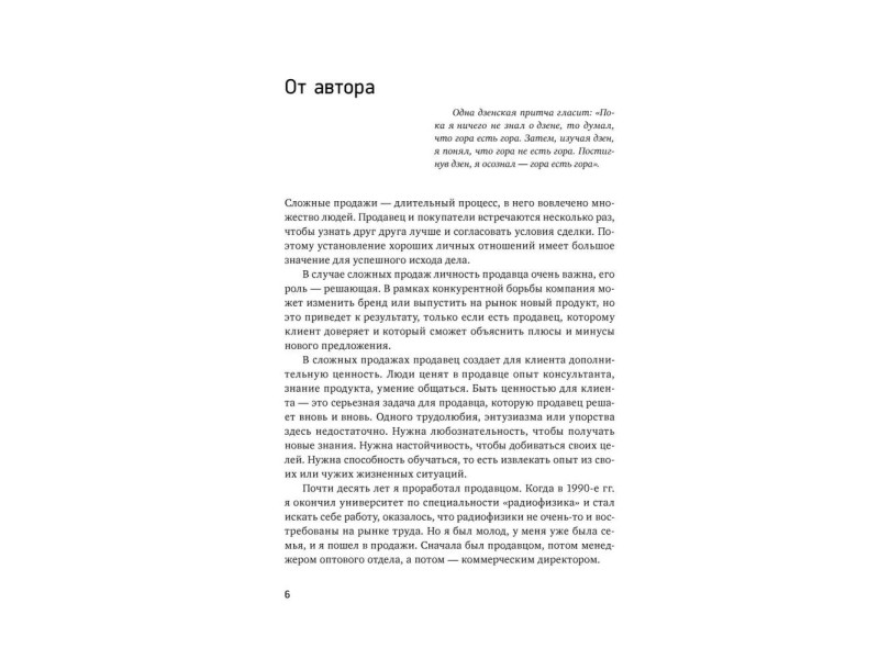 Структурированный теоретический материал, подкрепленный примерами и историями из жизни, позволяет легко научиться вестисложные продажи. Книга адресована специалистам по продажам, а также всем, ктохочет получить действующие алгоритмы продаж и мощные инструменты управления коммуникацией.