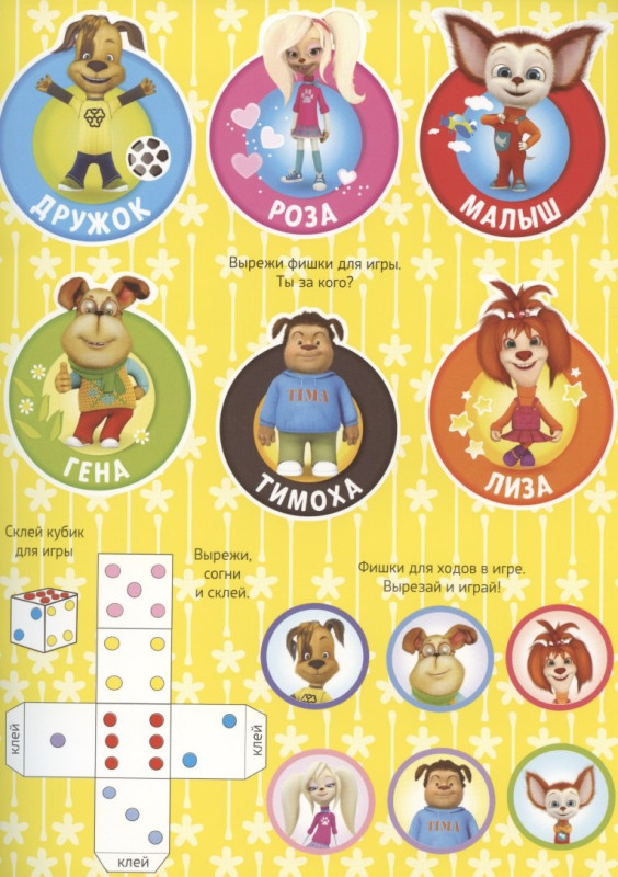 В этой книге есть настольная игра, рассчитанная на несколько игроков. Помогите детям аккуратно вырезать и склеить кубик и фишки для игры. Выигрывает тот, кто первым доберётся до финиша.