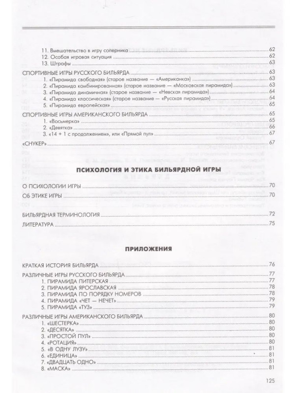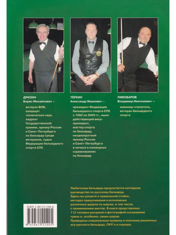 Издаются журналы и книги по бильярду. Но естественно, как и в любом виде спорта, здесь нет канонов, поэтому в книге, которую я представляю по поручению авторов, сделана очередная попытка поделиться с начинающими игроками своими знаниями и опытом. Появление этой книги, на наш взгляд, весьма актуально и в связи с изменениями в правилах бильярдных игр, что меняет свое представление о технике и тактике игры.