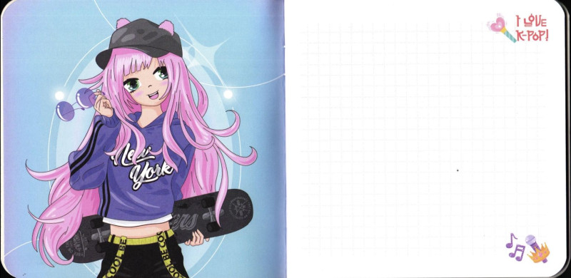 Блокнот К-Рор (девочка в топике и юбке, розово-желтый фон)