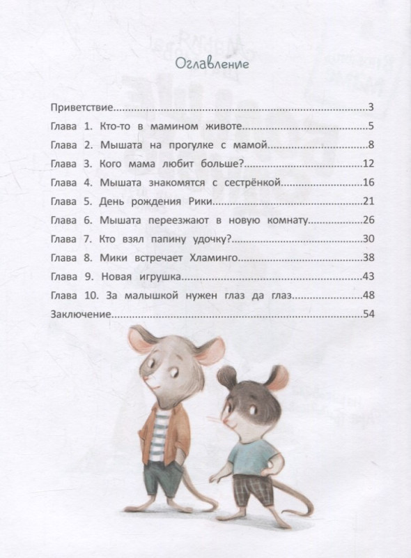 Дорогие дети и их родители! В этой книге вы найдёте добрые и поучительные истории о мышатах Мики и Рики. В каждой главе герои попадают в ситуации, знакомые всем детям, которые растут вместе с братьями или сестрами. Как поделить новую игрушку? Кого мама любит больше? Кто должен заниматься уборкой? Всегда ли ябедничать плохо? Как выходить из конфликта и как сообщить ребёнку о скором пополнении в семье?
