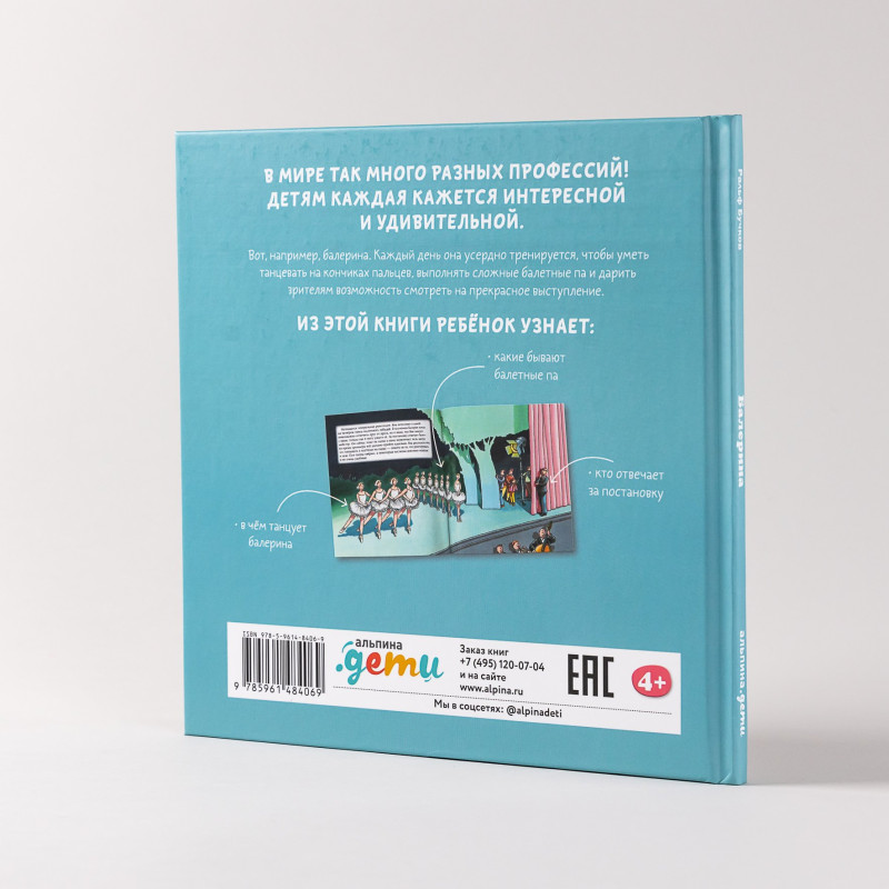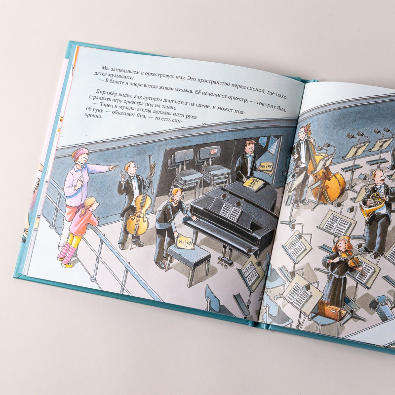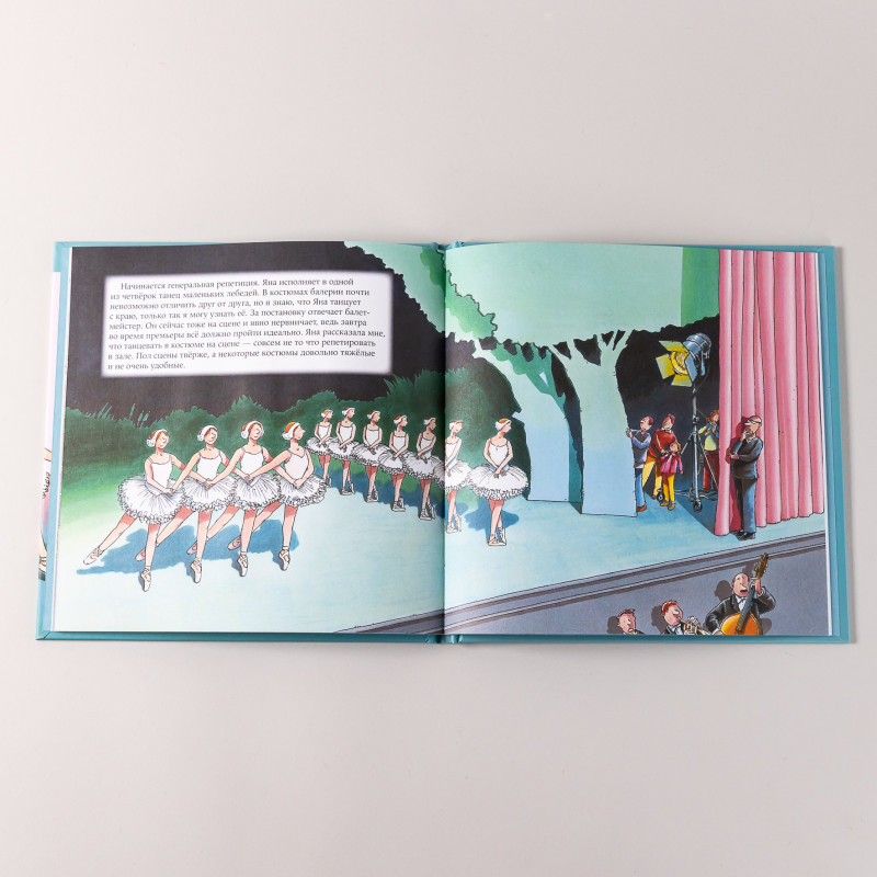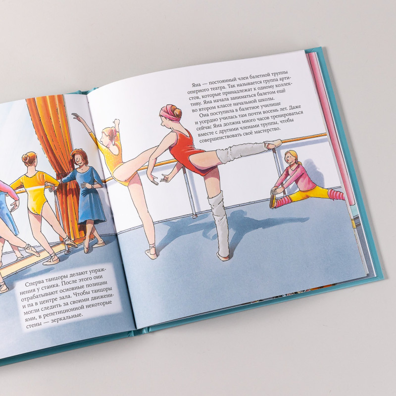 Все книги построены по принципу «один день из жизни…»: герои историй, дети, приходят в гости на работу к своим взрослым знакомым. В этой книге девочка Ханна попадает на генеральную репетицию в театре и узнаёт всё об интересной и непростой профессии балерины. Каждый день её подруга Яна усердно тренируется, чтобы уметь танцевать на кончиках пальцев и выполнять такие сложные движения, как жете, фуэте, арабеск и многие другие. Вместе с техниками, механиками сцены, костюмерами, дирижёрами, балетмейстерами артисты балета дарят зрителям возможность смотреть на прекрасное выступление. пер. с нем. Мария Белова