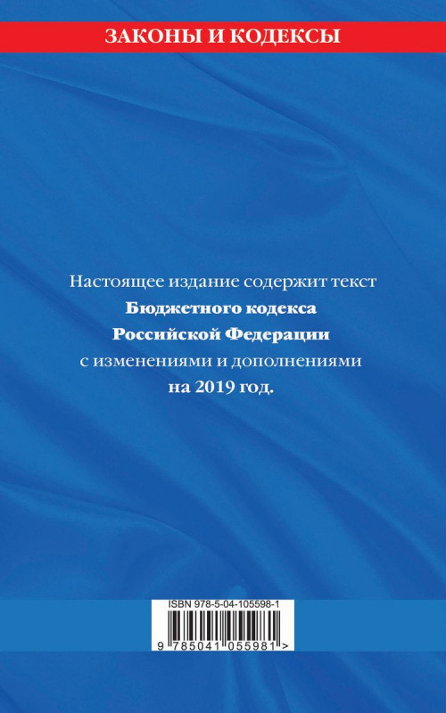 О чем эта книга Здесь вы найдете текст Бюджетного кодекса Российской Федерации с актуальными изменениями и дополнениями. Книгу приятно держать в руках благодаря удобному формату и привлекательной обложке, а ее компактность и легкость позволят всегда иметь ее при себе. Для кого книга Для юристов, работников органов государственной власти, органов местного самоуправления, занимающихся составлением и рассмотрением проектов бюджетов, утверждением и исполнением бюджетов, контролем за их исполнением, осуществлением бюджетного учета, составлением, внешней проверкой, рассмотрением и утверждением бюджетной отчетности, а также для всех остальных участников бюджетного процесса. Для преподавателей и студентов вузов, а также для всех тех, кто интересуется изменениями в бюджетном законодательстве. Части: I. ОБЩИЕ ПОЛОЖЕНИЯ II. БЮДЖЕТНАЯ СИСТЕМА РОССИЙСКОЙ ФЕДЕРАЦИИ III. БЮДЖЕТНЫЙ ПРОЦЕСС В РОССИЙСКОЙ ФЕДЕРАЦИИ IV. ОТВЕТСТВЕННОСТЬ ЗА НАРУШЕНИЕ БЮДЖЕТНОГО ЗАКОНОДАТЕЛЬСТВА РОССИЙСКОЙ ФЕДЕРАЦИИ V. ЗАКЛЮЧИТЕЛЬНЫЕ ПОЛОЖЕНИЯ