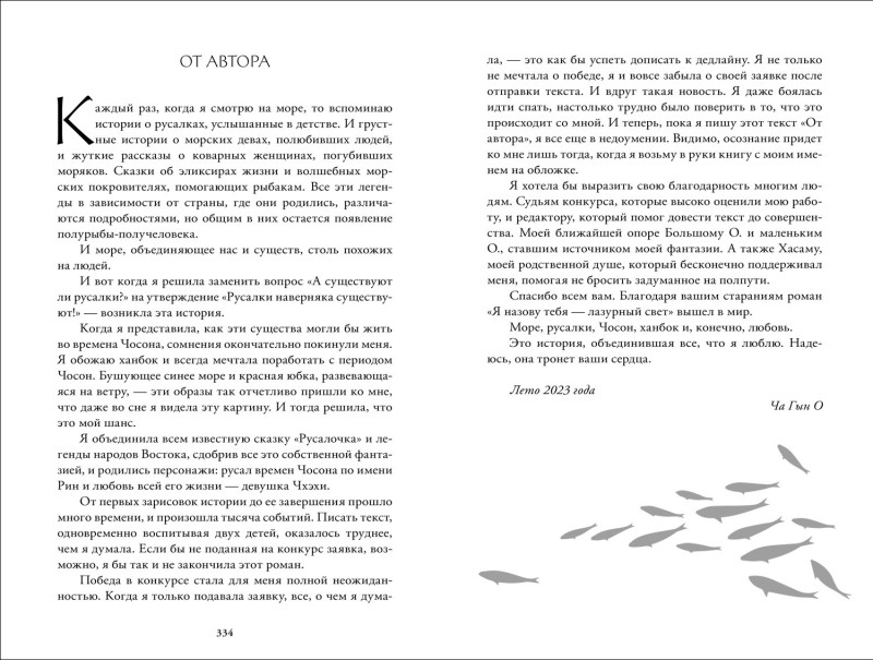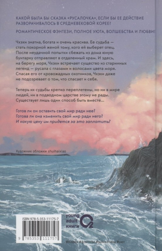 Романтическое фэнтези о любви между человеком и русалом в эпоху Чосон, полное волшебства и искренней любви. Победитель конкурса K-Story 2022 года в номинации «Драма». Готовы узнать, какой была бы сказка «Русалочка», если бы ее действие разворачивалось в средневековой Корее?! Чхэхи знатна, богата и очень красива. Ее судьба – стать покорной женой тому, кого ей выберет отец. За неповиновение родительской воле юную бунтарку ссылают в отдаленный храм. И здесь, на берегу моря, Чхэхи встречает существо из старинных легенд – русала с глазами и волосами цвета моря. Спасая его, девушка даже не подозревает о том, что спасает и себя. Теперь их судьбы крепко переплетены, но есть ли способ быть вместе? И какую цену придется за это заплатить? «Я назову тебя – лазурный свет» – азиатский ретеллинг сказки Х. К. Андерсена, нежная и трогательная история любви, которая станет отличным подарком любителю корейской прозы и романтического фэнтези, а также всем поклонникам «Ходячего замка»! Художник обложки shuihaixiao. #Корея #фэнтези #романтика #уют #ретеллинг [перевод с корейского Алены Мындры]