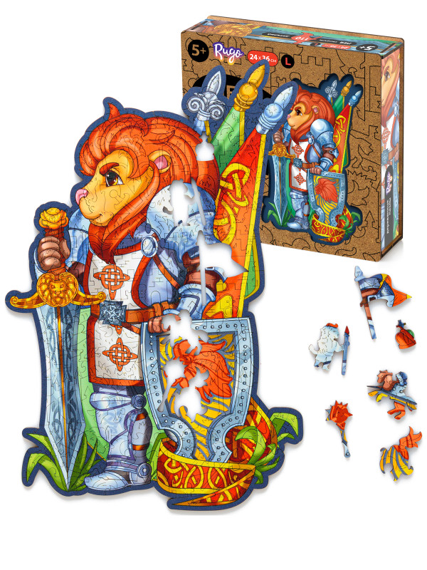 Наш Лев - идеал рыцарства и образец для подражания. Он сочетает в себе непобедимость и доблесть, справедливость, скромность, верность и сострадание. У всех окружающих он вызывает восторг и восхищение, отважный Лев всегда готов встать на защиту чести и достоинства слабых. Напишите свою хронику удач нашего Рыцаря! Пазл из 110 деталей, размер 24х36 см. Размер упаковки 15 х 15 х 5 см