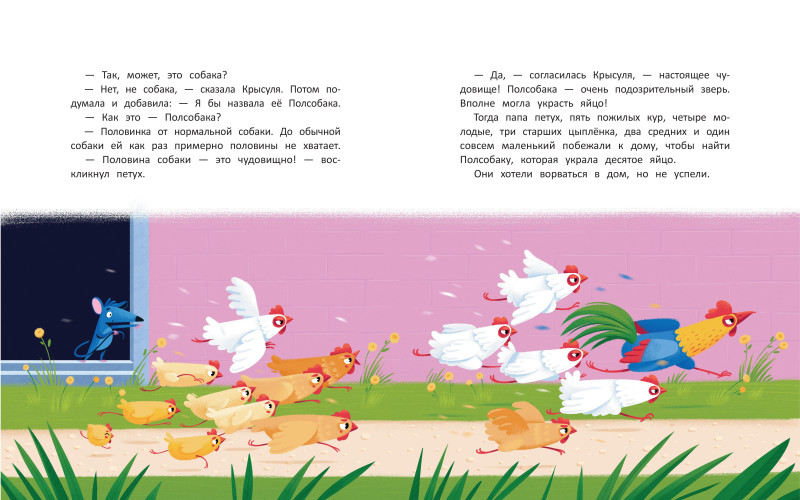 Однажды утром мама курица обнаруживает пропажу: исчезло десятое яйцо! Папа петух отправляется расследовать кражу в компании пяти пожилых кур, четырёх молодых, трёх старших цыплят, двух средних и одного совсем маленького. Куда приведёт их поиск?
