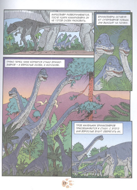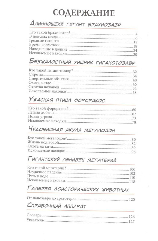Книга посвящена крупнейшим динозаврам и млекопитающим, которые обитали на суше и в воде в доисторические времена. Увлекательные комиксы перенесут читателя на миллионы лет назад и познакомят с гигантскими представителями древней фауны Северной и Южной Америки. Комиксы основаны на новейших палеонтологических открытиях. Книга дополнена галереей доисторических животных и познавательной информацией о них.