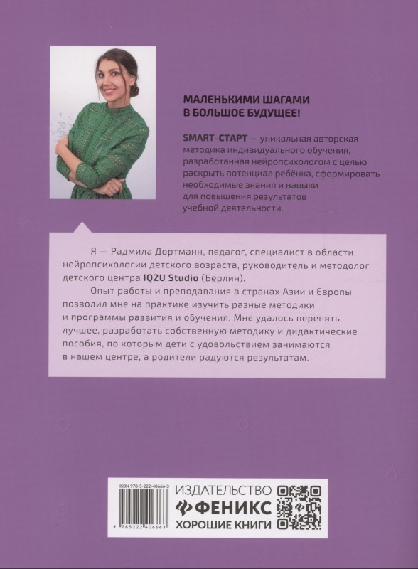 Каждая книга серии "Smart-старт" - это система заданий и упражнений, направленная на развитие конкретного навыка. Яркие и интересные задания серии "Smart-старт" разработаны с упором на визуальную инструкцию, что позволяет ребёнку легко (нативно) понимать и выполнять упражнения без участия взрослого. Данное пособие разработано для детей, которые только начинают своё знакомство с линиями (горизонтальными, вертикальными, диагональными и т. д.) и формами. Пошаговая система заданий и упражнений направлена на развитие мелкой моторики и подготовки руки к письму, развития координации движений, внимания, воображения и усидчивости. Яркие и необычные прописи-обводилки серии "Smart-старт" превратят обучение ребёнка в развлечение. Тетрадь можно использовать для индивидуальных и групповых занятий. тираж 7000, 2024 г.