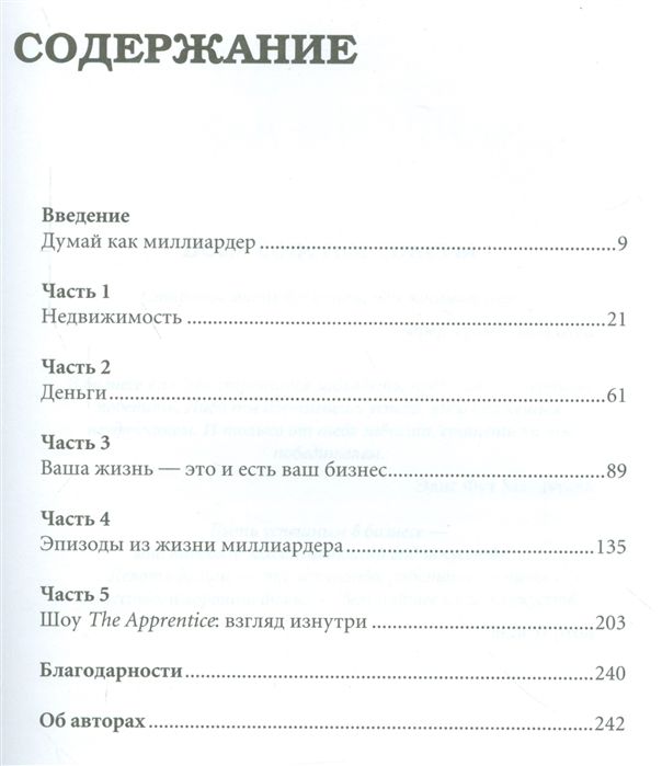 Чтобы стать по-настоящему богатым человеком, необходимо научиться мыслить как миллиардер, считает автор книги. Он показывает, как правильно относиться к деньгам, карьере, собственным талантам и к жизни вообще. В этой книге вы найдете также советы по поводу вложения средств в недвижимость. Дональд Трамп доказывает, что стать богатым достаточно легко. Гораздо труднее оставаться таковым. Автор предлагает "руководство потребителя", призванное помочь в науке обладания всеми благами, от обручальных...