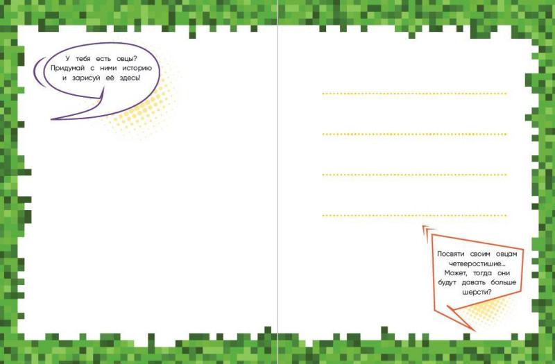 Вдохновляйтесь любимыми персонажами, придумывайте веселые сценки, рисуйте, раскрашивайте и создавайте свою собственную квадратную Вселенную в стиле Майнкрафт!