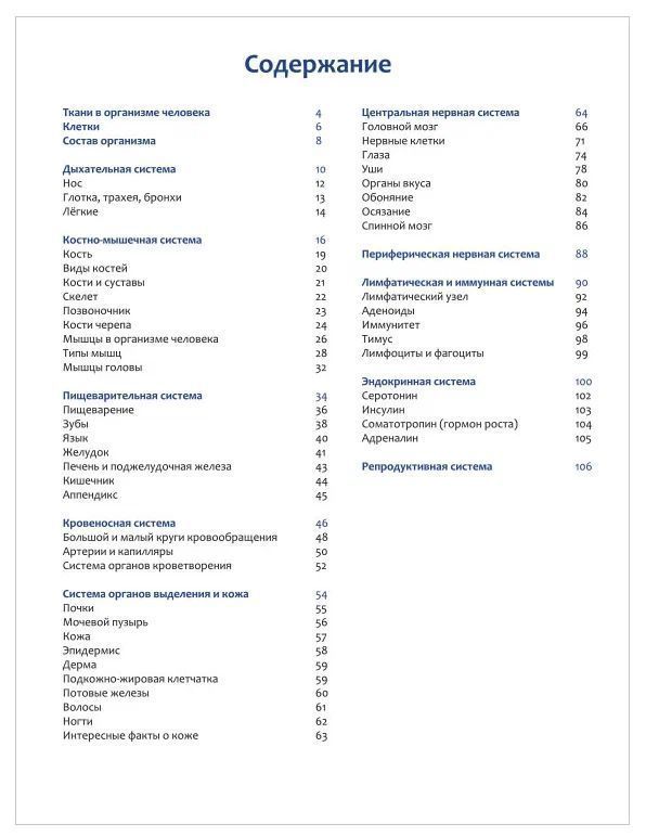 Книга рассказывает о строении человеческого тела: о скелете, мышцах, кожном покрове и внутренних органах, а также о пищеварительной, нервной, кровеносной и других системах организма человека. Красивые цветные иллюстрации станут отличным помощником в изучении этих интереснейших тем.