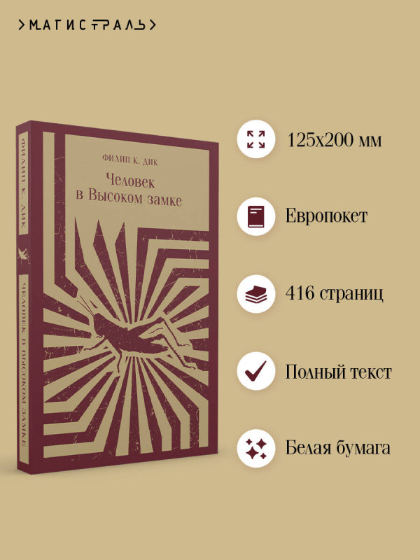18+ НЕЗАКОННОЕ ПОТРЕБЛЕНИЕ НАРКОТИЧЕСКИХ СРЕДСТВ, ПСИХОТРОПНЫХ ВЕЩЕСТВ, ИХ АНАЛОГОВ ПРИЧИНЯЕТ ВРЕД ЗДОРОВЬЮ, ИХ НЕЗАКОННЫЙ ОБОРОТ ЗАПРЕЩЕН И ВЛЕЧЕТ УСТАНОВЛЕННУЮ ЗАКОНОДАТЕЛЬСТВОМ ОТВЕТСТВЕННОСТЬ Премия Hugo за лучший роман._x000D_ Две финские премии за фантастику._x000D_ Польская премия SFinx._x000D_ Номинация на премию «Великое Кольцо»._x000D_ _x000D_ Культовый и актуальный в наши дни роман Филипа К. Дика, ремикс дистопии и альтернативной истории. _x000D_ _x000D_ Германский рейх и Японская империя выиграли Вторую мировую войну и разделили Америку. Наступили 60-е, годы стабильности и благополучия. Назревает конфликт между державами, который может привести к ядерной войне. На этом фоне сплетаются линии судеб японского чиновника и агента абвера, торговца предметами народного искусства и еврея-ювелира, его свободолюбивой жены и нацистского киллера. В центре узора — мистический оракул «Книга Перемен» и запрещенная властями рейха книга «И наестся саранча», написанная Человеком в Высоком замке. Кто из них даст ответ на вопрос: может ли абсолютное зло творить добро? _x000D_ _x000D_ Книга получила премию Hugo и была экранизирована студией Amazon и семьей Дика. _x000D_ _x000D_ _x000D_ «Самая резонансная и тщательно продуманная книга Дика». — New York Times_x000D_ _x000D_ «Калифорнийский Уильям Блейк. Визионер и пророк». — Daily Telegraph_x000D_ _x000D_ «Наш местный Борхес». — Урсула Ле Гуин