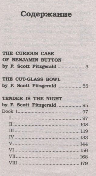 История американской и мировой литературы невозможна без упоминания имени Фрэнсиса Скотта Фицджеральда; его произведения признаны мировой классикой. В романах автора нашел свое отражение так называемый "век джаза" - период в истории Америки с момента окончания Первой мировой войны и до начала Великой депрессии 30-х годов. В данную книгу вошли три произведения Фицджеральда: "Загадочная история Бенджамина Баттона", "Хрустальная чаша" и роман "Ночь нежна".