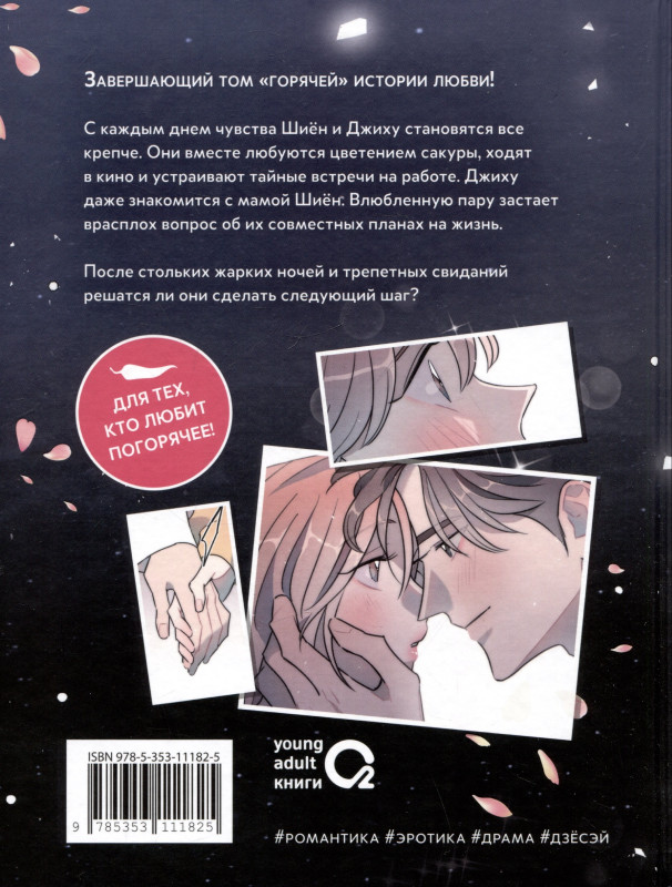 Третий, заключительный том популярной корейской манхвы с рейтингом 18+ и высокими оценками 9,5 на русскоязычных платформах. Комикс посвящен трогательной и одновременно страстной истории любви, волею случая вспыхнувшей между лучшими друзьями. Нежная рисовка, откровенные сцены и чувства, которые захлестнут с головой. С каждым днем чувства Шиён и Джиху становятся все крепче. Они вместе любуются цветением сакуры, ходят в кино и устраивают тайные встречи на работе. Джиху даже знакомится с мамой Шиён. Влюбленную пару застает врасплох вопрос об их совместных планах на жизнь. После стольких жарких ночей и трепетных свиданий решатся ли они сделать следующий шаг? «Горячая дружба» – первая в мире печатная версия популярного в сети вебтуна! Это восхитительно откровенный и изумительно трогательный комикс о потаенных чувствах, вырвавшихся на волю желаниях и выборе, который способен изменить жизнь. Цикл графических романов «Горячая дружба» издан на мелованной бумаге и станет отличным подарком ценителям прекрасного и поклонникам романтических историй, в том числе с рейтингом 18+. #романтика #эротика #драма #дзёсэй