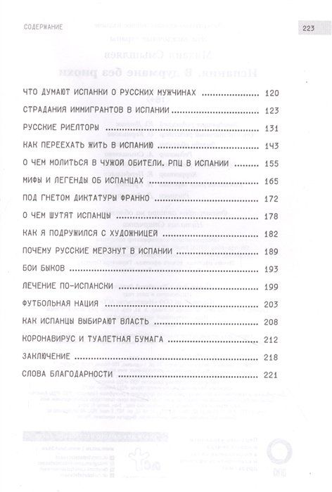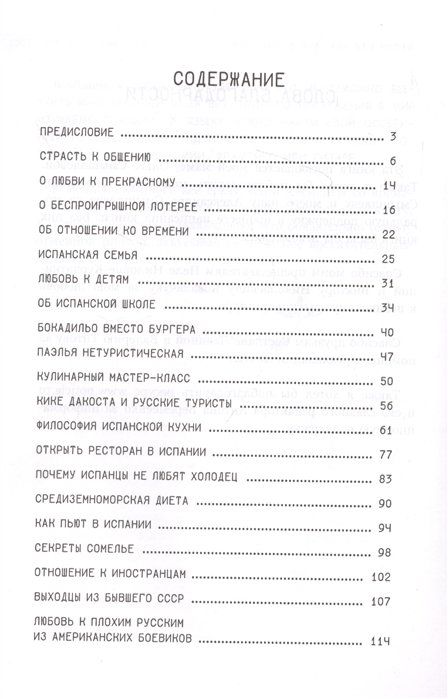Погружая читателя в ритм настоящей, живой и современной Испании, автор последовательно знакомит с разными аспектами жизни в этой жаркой стране. Рассказывает об особенностях испанских вкусов. Раскрывает главные качества испанцев, их умении наслаждаться жизнью, описывает их особенное отношение ко времени. Для полной картины, разумеется, должны быть главы о тореро и страсти к футболу, конечно, и об этом сказано в этом издании. А также об особенностях испанского юмора и культуры, об отношении испанцев к русским женщинам, о том, как живут те, кто переехал в Испанию.