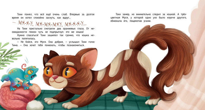 Однажды Токи похитил филин. Геккон вынужден был сбросить хвост, чтобы выжить. Так Токи оказался далеко от дома, совсем один... И без хвоста! Что же делать? Читайте историю, и узнаете, сможет ли малыш победить свои страхи и неуверенность, найти друзей и вернуться к родным.