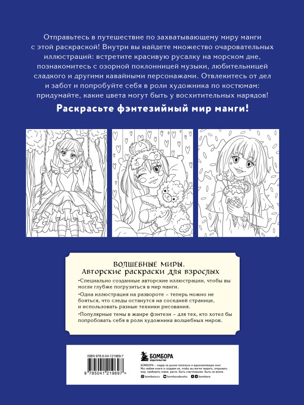 Плотная белая бумага, потрясающие авторские иллюстрации — эта раскраска подойдет как для начинающих, так и для продвинутых художников. Раскрасьте фэнтезийный мир манги!