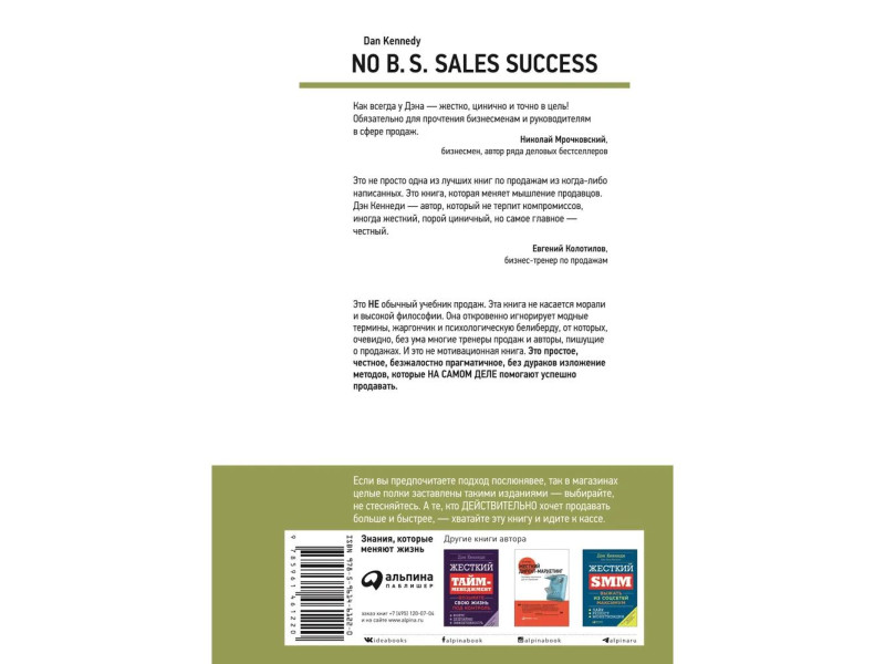 В этой книге известнейшего бизнес-тренера Дэна Кеннеди изложены самые важные методики продаж. Они были вынесены из личного опыта, подсмотрены у суперуспешных профессионалов и отточены до совершенства клиентами Дэна с шести- и семизначным доходом. Это не то, что должно работать. А то, что действительно работает.