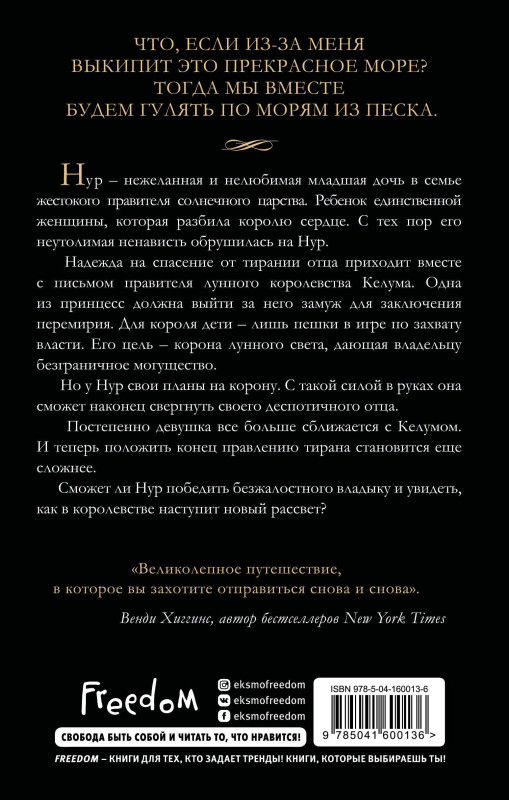 Нур — нежеланная и нелюбимая младшая дочь в семье жестокого правителя солнечного царства. Ребенок единственной женщины, которая разбила королю сердце. С тех пор его неутолимая ненависть обрушилась на Нур.