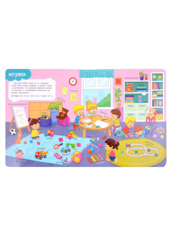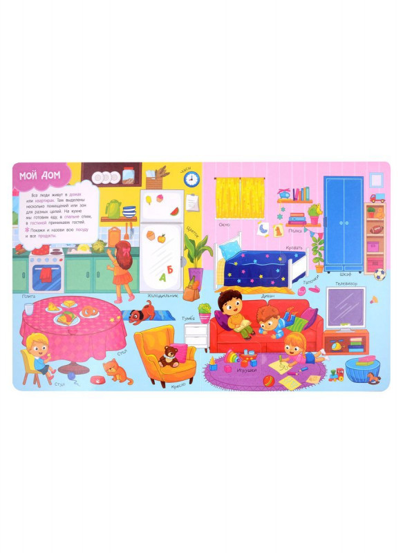 На каждом развороте яркие современные иллюстрации, небольшое задание и окошки, и окошки, открыв которые ребёнок узнает много интересного!
