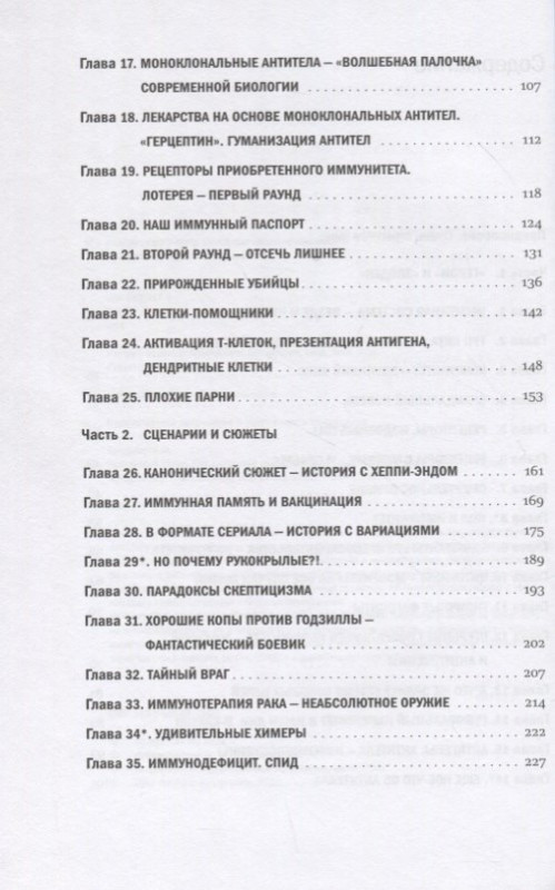 Кондратова М. К64 Невидимый страж. Как иммунитет защищает нас от внешних и внутренних угроз / Мария Кондратова. — М. : Альпина нон-фикшн, 2022. — 294 с. : ил. ISBN 978-5-00139-750-2 Многим людям, приступавшим к изучению иммунологии, эта наука показалась запутанной и скучной, но только не автору этой книги, молекулярному биологу Марии Кондратовой, которая берется показать, что на самом деле эта область знаний увлекательна и непредсказуема, как хорошее полицейское кино: с погонями, взрывами и поиском преступников. Используя образы и метафоры самого динамичного жанра, но не жертвуя при этом научной точностью, автор превращает рассказ о защитных силах нашего организма в захватывающий экшен. Из книги Марии Кондратовой читатель узнает о том, как устроен иммунитет и почему он может быть не только защитником, но и опасным врагом, разрушающим организм, и познакомится с передовыми медицинскими технологиями (лекарствами и вакцинами), с помощью которых современная наука борется с ковидом, раком, СПИДом и другими опасными заболеваниями. УДК 612.017.1 ББК 52.7