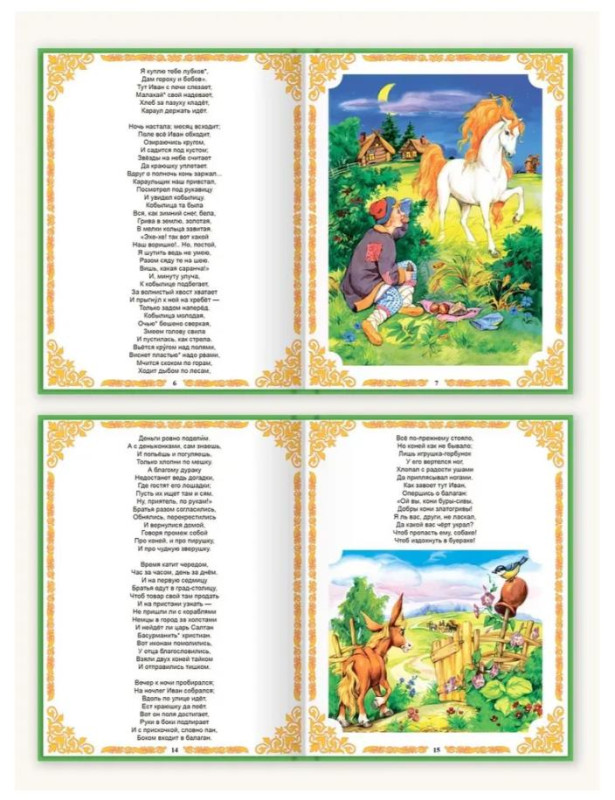 В данную книгу вошла великолепная сказка Петра Ершова «Конек-Горбунок». Это классическое произведение детской литературы стало бессмертным благодаря истинно народному сюжету, легкому стиху, обаятельным героям и необыкновенным приключениям, происходящим с ними. Сказку продолжают любить и дети, и взрослые. Хочется возвращаться к ней снова и снова: так близко и дорого это произведение читателям. Главные герои книги – Иванушка-дурачок и волшебный Конек-Горбунок. На протяжении повествования с ними случаются удивительные события. Друзья отправляются на поиски Жар-птицы, Царь-девицы и ее перстня. Несмотря на все препятствия, встающие на их пути, Иванушка с Коньком-Горбунком достигают цели и побеждают зло. Текст сопровождают большие яркие иллюстрации Ольги Пустовойт.
