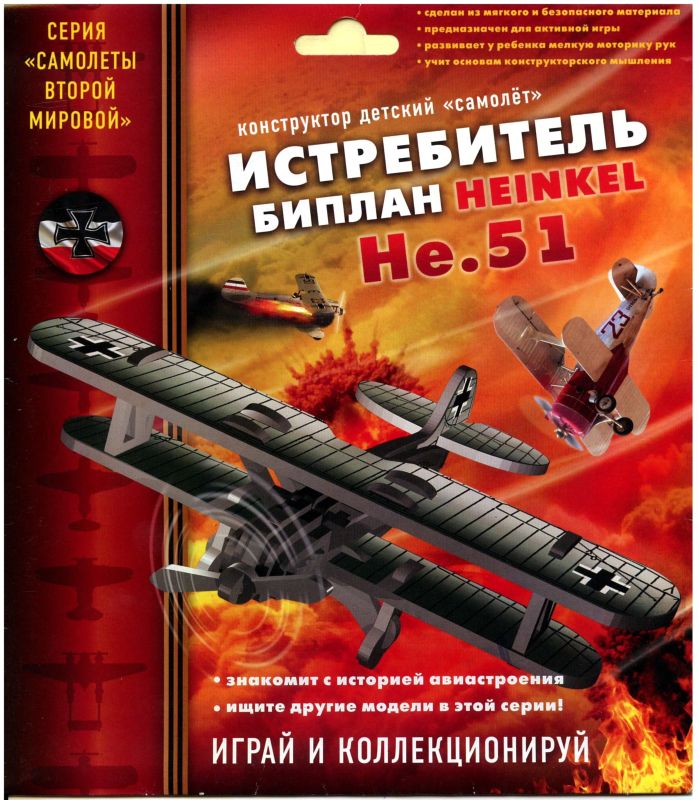 Конструктор детский самолёт Истребитель Биплан Heinkel He.51