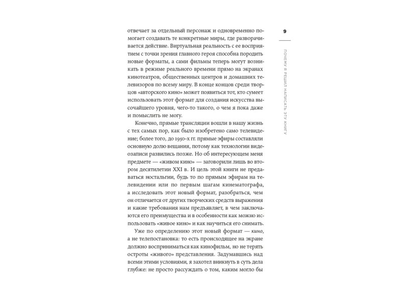 Эта книга не только руководство по созданию "живого кино", но еще и автобиография кинорежиссера. Он рассказывает о людях и фильмах, которые на него повлияли, и делится личным взглядом на историю развития кинематографа и телевидения.