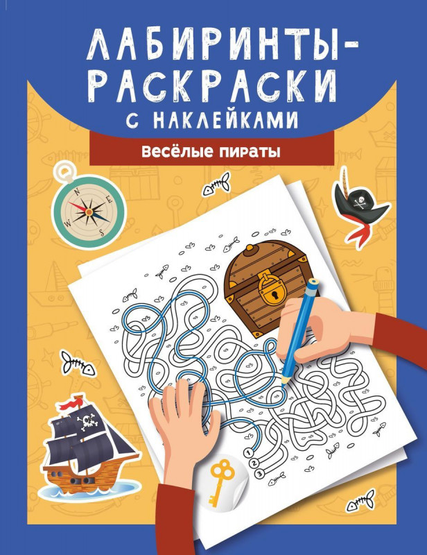 Отважные пираты бороздят водные просторы в поисках добычи. Вместе с командой весёлых морских разбойников ты отправляешься на поиски сокровищ. Проходи лабиринты и открывай сундуки с золотом и драгоценностями, сражайся с опасными акулами, вызволяй своих товарищей из беды. В книге тебя ждут рисунки для раскрашивания, наклейки и запутанные дорожки различного уровня сложности.