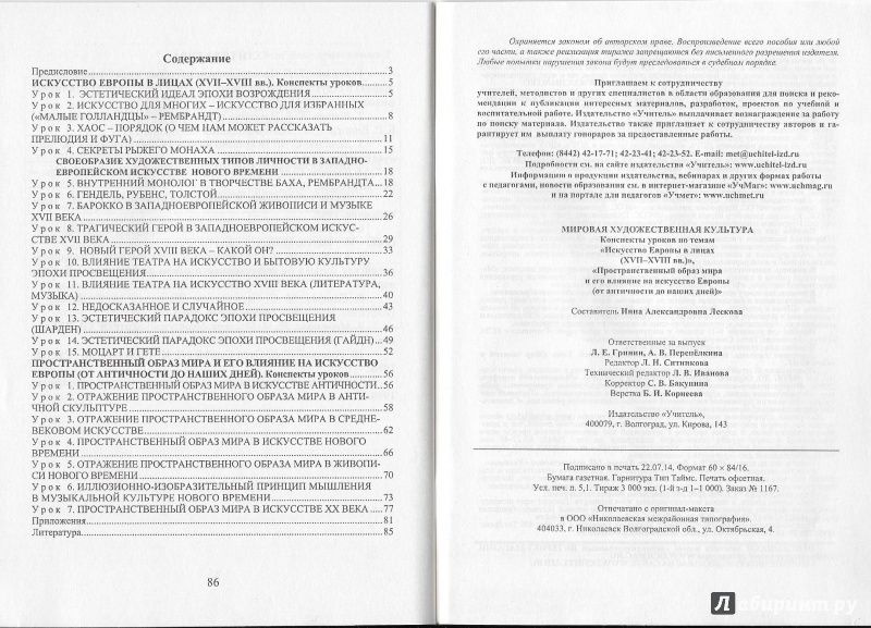 Большой вклад в достижение главных целей современного основного общего образования вносит изучение искусства. В пособии предложены конспекты уроков из курса мировой художественной культуры, которые помогут преподавателям направить деятельность учащихся на успешное достижение ими личностных (гармонизация интеллектуального и эмоционального развития личности; развитие умений и навыков познания и самопознания через искусство, накопление разнообразия и неповторимого опыта эстетического переживания), метапредметных (активное использование основных интеллектуальных операций: анализ и синтез, сравнение, обобщение, систематизация, выявление причинно-следственных связей, поиск аналогов в бытии и динамике развития искусства; развитие критического мышления, способности аргументировать свою точку зрения по поводу произведений искусства; формирование ключевых компетенции в процессе диалога с искусством: исследовательские, коммуникативные информационные умения) и предметных образовательных результатов в соответствии с ФГОС НОО.