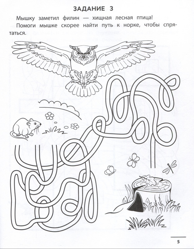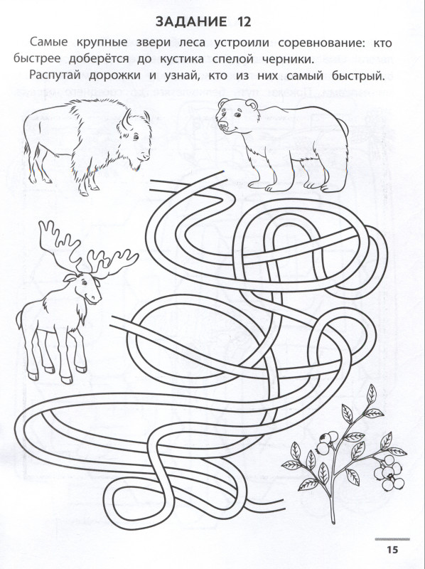 Кроме того, автор позаботился об игровом сюжете, объединяющем все задания в одну большую историю о жизни животных в лесу. Поэтому, путешествуя со страницы на страницу и выполняя задания, ваш малыш узнает много нового и интересного о лесных обитателях.