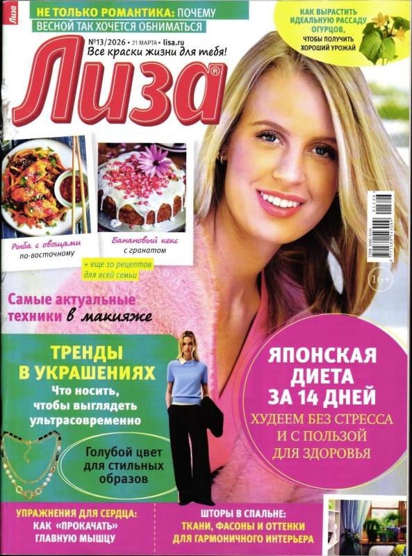 Самый популярный в России еженедельный журнал для молодых женщин «Лиза» стал еще интереснее, еще привлекательнее для читательниц. Теперь больше знаменитостей на страницах любимого журнала! Фитнес со звездой и звездный макияж, уроки стиля и самые горячие новости из жизни кумиров. А еще - модный шопинг, актуальная мода, новинки косметики и великолепные идеи для дома. Романтические истории о настоящей любви и рассказы читательниц о разных жизненных ситуациях. Аспекты психологии, секреты успешных отношений с окружающими и искусство сохранения любви.