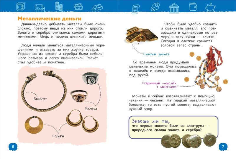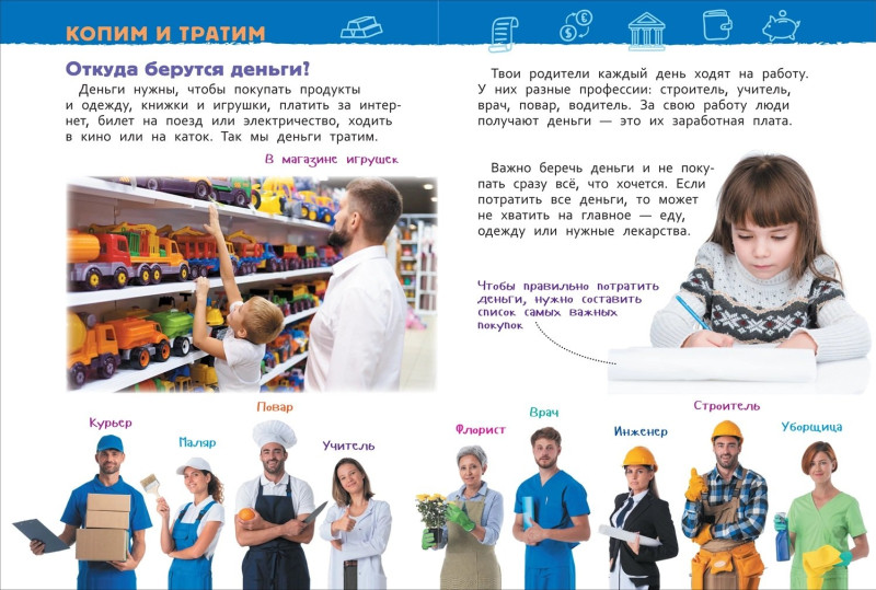 Новая книга из серии «Энциклопедия для детского сада» расскажет юному читателю о деньгах. О том, что было, когда денег еще не существовало, когда и где они появились и почему они так важны в нашем мире. Малыш узнает, откуда берутся деньги, как с ними грамотно обращаться, в том числе в виртуальном мире.