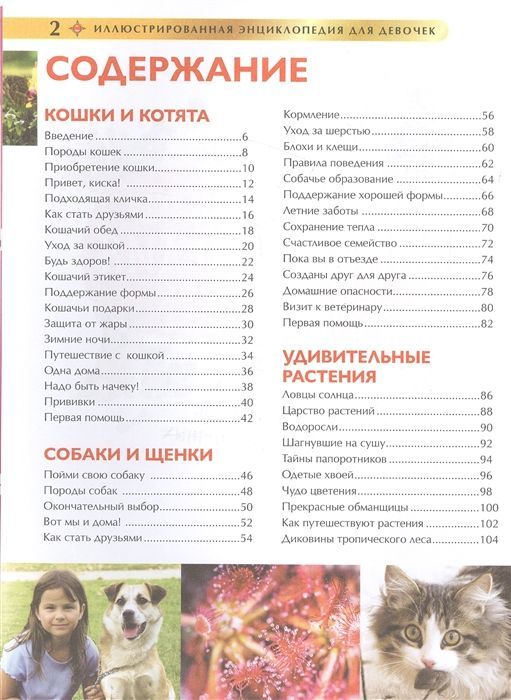 домашних животных узнают, как правильно ухаживать за питомцем, следить за его здоровьем и воспитывать. Путешественницы смогут изучить чудеса света: пирамиды Гизы, Стоунхендж, озеро Байкал и многие другие рукотворные и природные редкости древнего и современного мира. А исследовательницы живой природы найдут самые необычные растения, поражающие воображение размерами, причудливой формой и красотой.