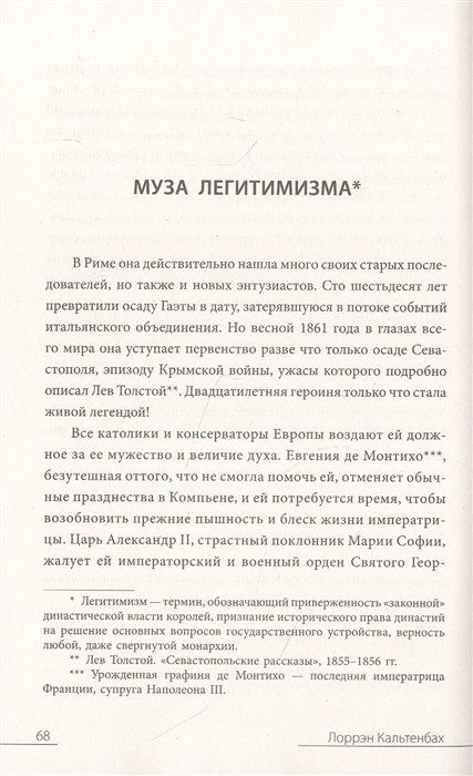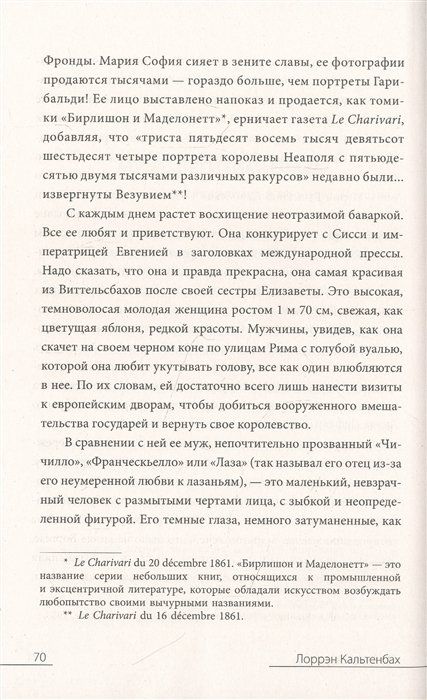 После тщательного разбора семейных архивов и трех лет путешествий по Франции, Германии и Италии, она воскрешает тайную любовь последней королевы Обеих Сицилий Марии Софии Баварской.