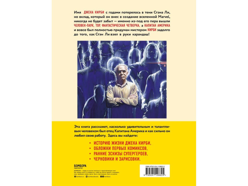 В книге вы найдете не известные ранее факты из биографии Джека Кирби, обложки самых первых комиксов Marvel, черновики и зарисовки мастера и воспоминания современников о нем.