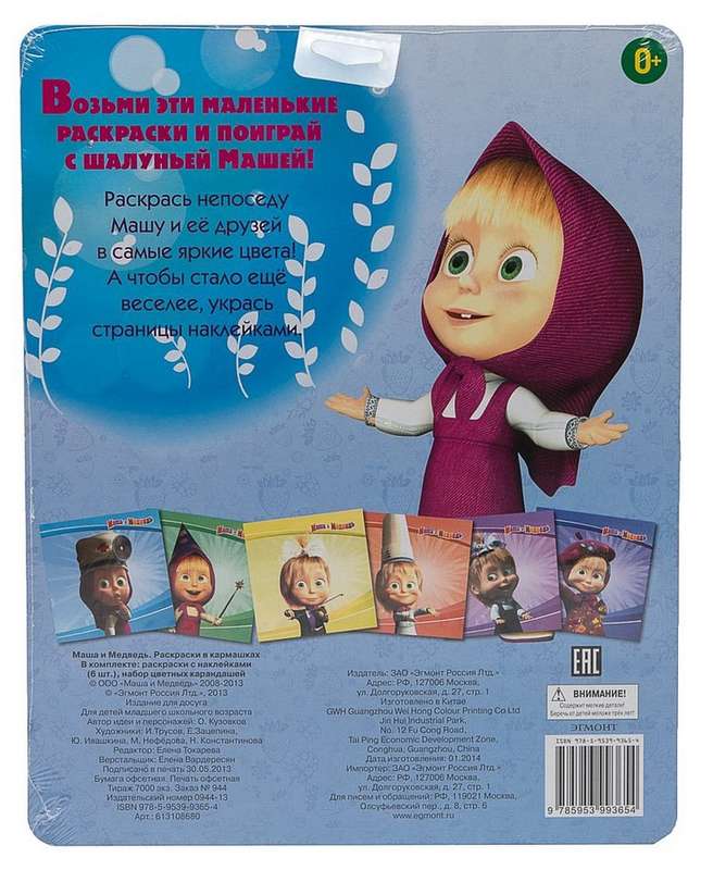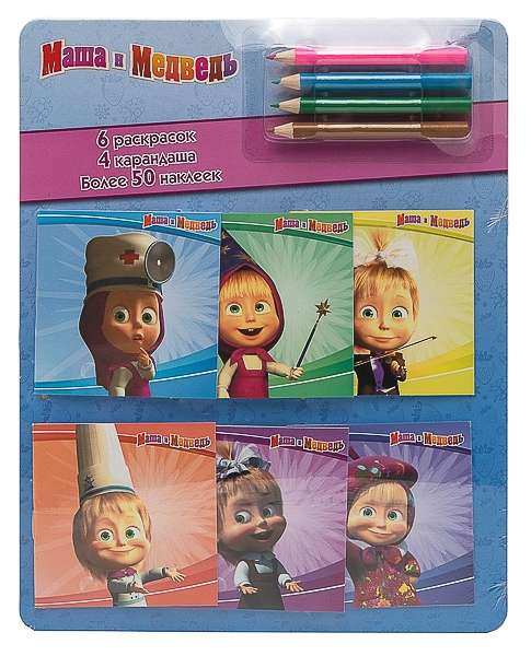 Возьми эти маленькие раскраски и поиграй с шалуньей Машей! Раскрась непоседу и ее друзей в самые яркие цвета! А чтобы стало еще веселее, укрась страницы наклейками.