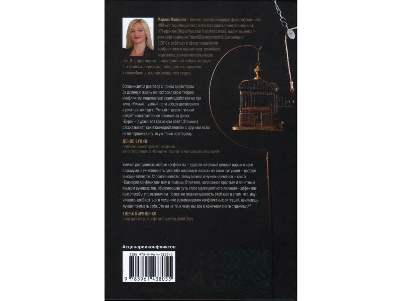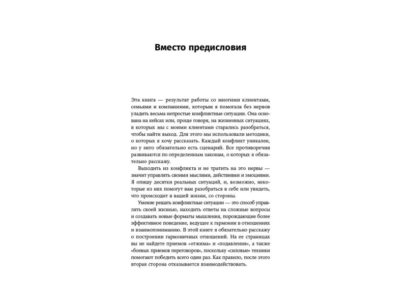 Автор книги Марина Майорова, кандидат философских наук, в прошлом руководитель в сфере HR, а ныне — бизнес-тренер по эффективным коммуникациям и управлению конфликтами рассказывает, что следует воспринимать конфликт как сценарий, в котором есть действующие лица и сюжет. Используя авторскую методику, вы научитесь управлять конфликтами и создавать свои сценарии отношений.