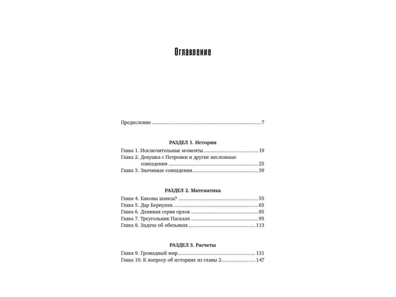 Что есть случайность? Этим вопросом мы задаемся, сталкиваясь с неожиданными и, казалось бы, невозможными совпадениями. Однако с математической точки зрения шансы многих событий гораздо выше, чем любой из нас мог бы подумать. В книге «Игра случая» математик Джозеф Мазур открывает необыкновенный мир теории вероятности, описывая сложные математические понятия простым, веселым языком. Как объяснить то, что книгу из школьной библиотеки с вашей подписью вы вдруг обнаруживаете на букинистическом развале в другой части света? Могут ли присяжные быть абсолютно уверенными в результатах анализа ДНК, найденного на месте преступления? Почему Аврааму Линкольну снились вещие сны? На многих примерах реальных событий Мазур показывает нам неотвратимость случайных событий. Эта книга понравится всем, кто когда-либо задавался вопросом, каким образом маленькие решения, которые мы принимаем в течение жизни, складываются в невероятное целое. Книга обязательна к прочтению любителям математики, а также всем тем, кто стремится понять истинную природу невероятных историй; тираж 4000; 16+; Джозеф Мазур ; перевод с английского: [Максим Исаков]; 2017