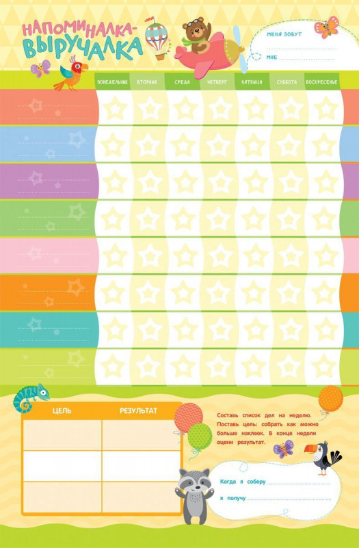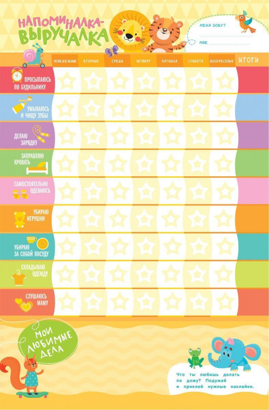Как непринужденно приучить ребенка к режиму дня и приобщить к домашним делам? В этом поможет двусторонний плакат-мотиватор! С его помощью малыш будет легко и с интересом выполнять разные задания. Ведь за каждое дело он получит наклейку, а в конце недели - поощрительный приз.
