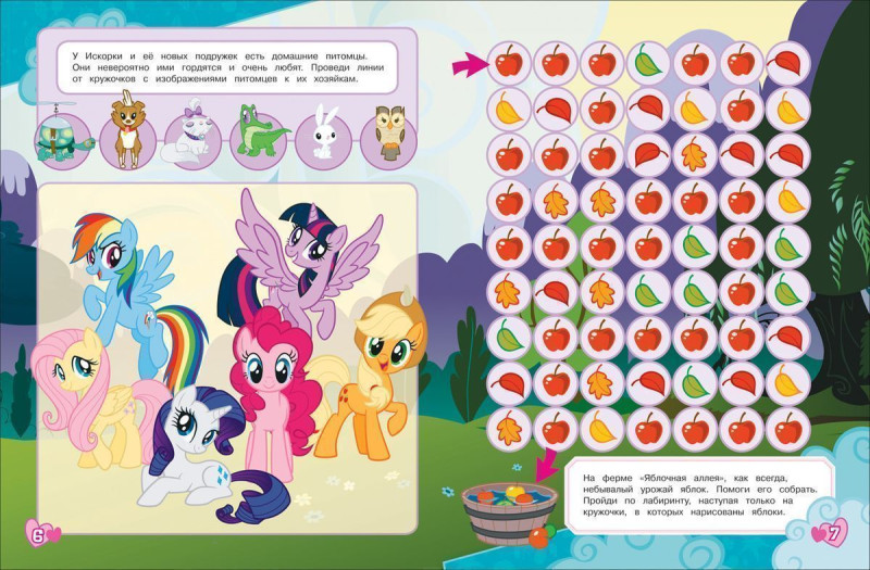 Цветная брошюра с интересными играми, раскрасками, увлекательными лабиринтами, головоломками и аппликациями по мотивам популярного мультсериала «Дружба - это чудо» (My Little Pony). Все необходимые для аппликации детали ребенок найдет внутри книжки.