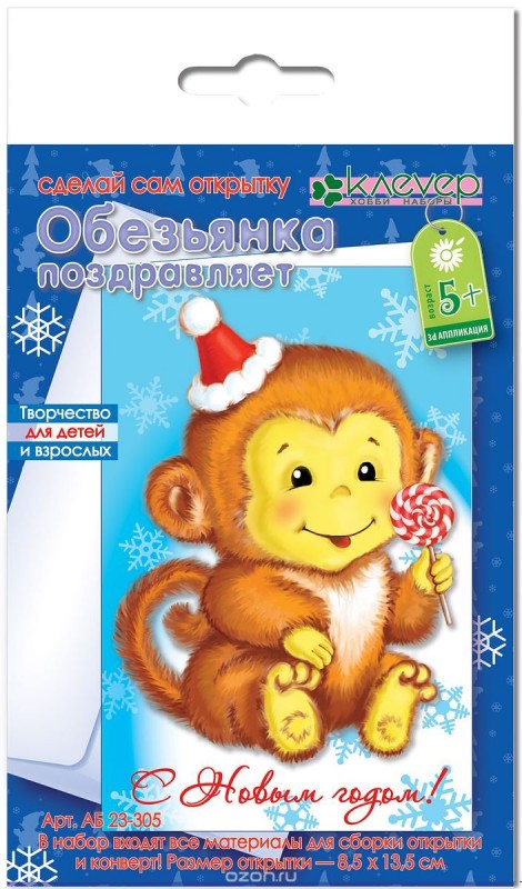 Набор для изготовления открытки "Обезьянка поздравляет"