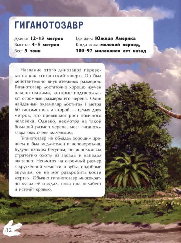 В этой книге собрано 12 самых больших плотоядных динозавров. Вы узнаете, какими они были, где и когда жили, чем питались, как охотились. Вы сможете разгадать кроссворд и филворд, где кроме динозавров спрятаны и другие животные. Вас ждёт карта доисторического мира, на которую можно наклеить наклейки с изображениями плотоядных динозавров.