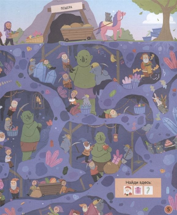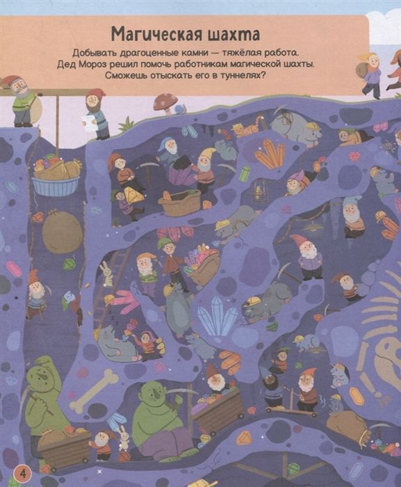 Скоро Новый год, и у Деда Мороза много хлопот – нужно проверить, кто вел себя хорошо, а кто – плохо, подготовить подарки и доставить их детям по всему миру! Помоги волшебнику выполнить миссию – отправляйся вместе с ним в кругосветное путешествие. Рассматривай каждый разворот, находи недостающие подарки и наслаждайся волшебной атмосферой праздника!