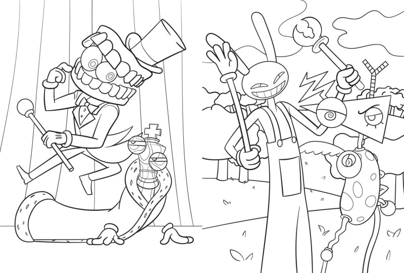Полюбившиеся персонажи уже ждут вас на страницах нашей раскраски — Помни, Рагата, Гэнгл, Королёр, Зубл и Джекс.